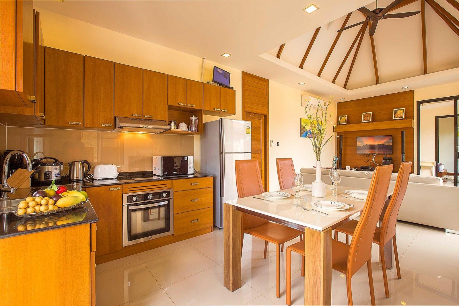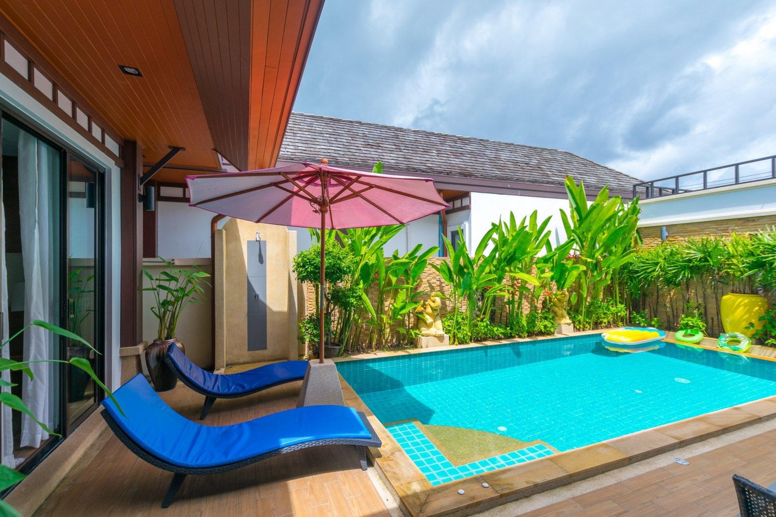 Вилла с 2 спальнями, полностью оборудованной кухней и гостиной с диваном и телевизором. В каждой спальне есть кровать размера „king-size“, телевизор, шкаф для одежды и собственная ванная комната с душем. Спальни не соединены между собой и имеют отдельный вход со стороны бассейна. Есть терраса с шезлонгами, бассейн размером 3 х 6 м, гриль-барбекю, крытая парковка с автоматическими воротами.