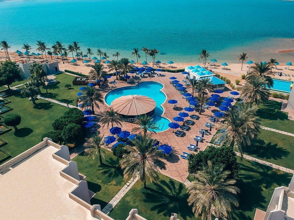 BM Beach Resort — это пляжный отель, окруженный садами, недалеко от Рас-эль-Хаймы в Объединенных Арабских Эмиратах. В отеле есть два открытых бассейна для гостей всех возрастов, а также встроенный неглубокий бассейн для детей. Имеется солнечная терраса и бар у бассейна. Вы также можете позагорать или прогуляться на частном пляже отеля. Здание, отремонтированное в 2016 году, имеет побеленный фасад с соответствующими белыми балконами и терракотовой крышей. В вестибюле есть окна от пола до потолка, традиционные арки и мраморный пол. В номерах светлые стены, бежевая плитка на полу и мебель из темного дерева. Зона бассейна и пляж усеяны пальмами, цветами и кустами. На территории работает сувенирный магазин и прачечная. В курортном отеле BM Beach вы можете провести дни, играя в теннис или пляжный волейбол. Отель также организует различные водные виды спорта. Вечерние развлечения, включая живую музыку. Чтобы сменить обстановку, отель находится в нескольких минутах езды на лодке от острова Аль-Марьян, первого искусственного острова в Объединенных Арабских Эмиратах, на котором расположено множество отелей, бутиков и набережная.