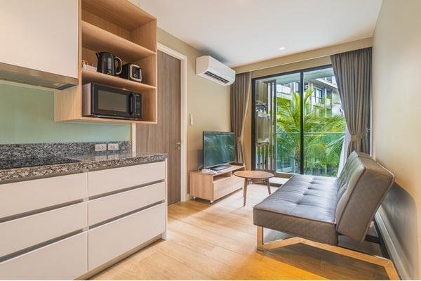 Люкс с тремя спальнями современный и современный, площадью от 66 кв.м. Это делает его идеальным отдыхом для всей семьи или группы друзей. Некоторые люксы имеют выход к бассейну, что идеально подходит для ленивых выходных, прыгая в бассейн и выходя из него. Кухня для самостоятельного приготовления пищи большая и полностью оборудованная, гостиная и столовая удобны и предлагают много места.