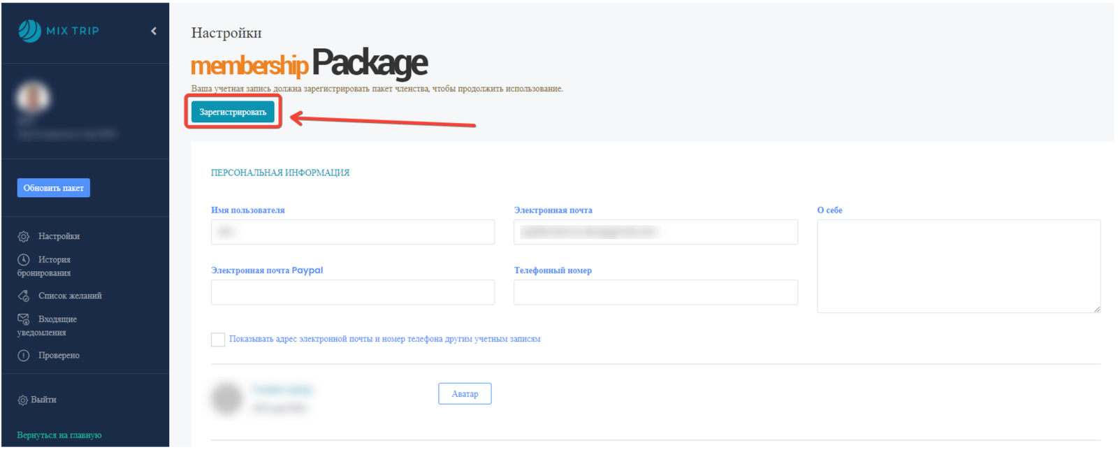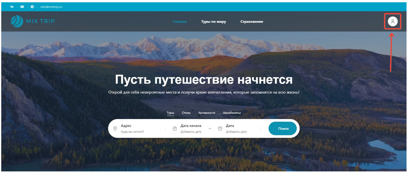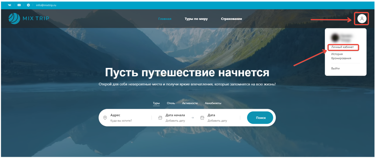 • Заходите на сайт mix-trip.com. В правом верхнем углу переходите в „Личный кабинет“.