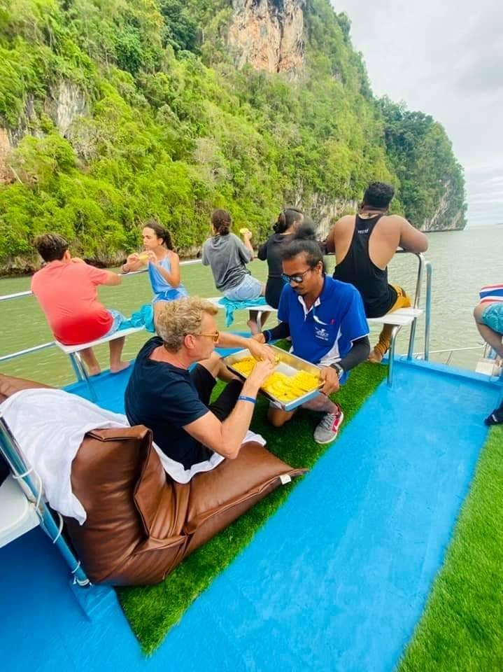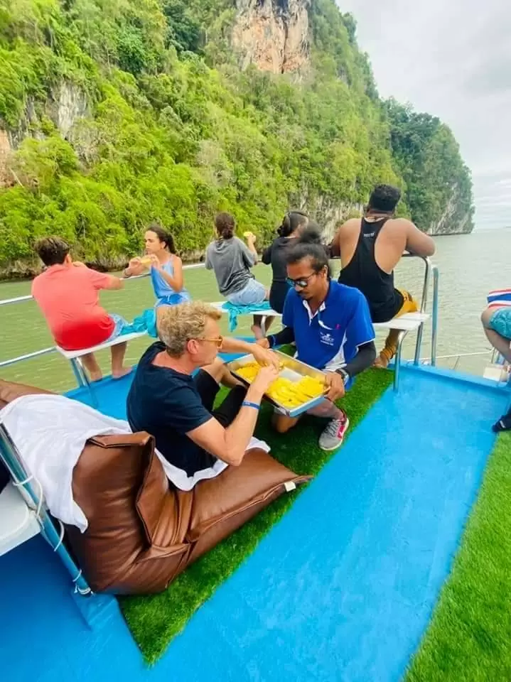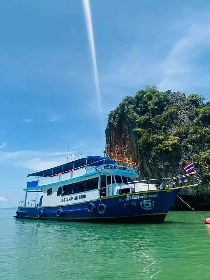07:00-08:30 Abfahrt vom Hotel 09:30 Abfahrt zur Bucht von Phang Nga 10:00 Besichtigung der Insel Panak, der Eiscreme- und Diamond-Höhle (je nach Gezeiten) 10:45 Kanu bei Hong Island 11:30 James Bond Island 12:30 Mittagessen im auf dem Wasser gebauten Zigeunerdorf Panya 14:00 Naka Island, Strandurlaub 16:00 Rückkehr zum Pier und Transfer zum Hotel